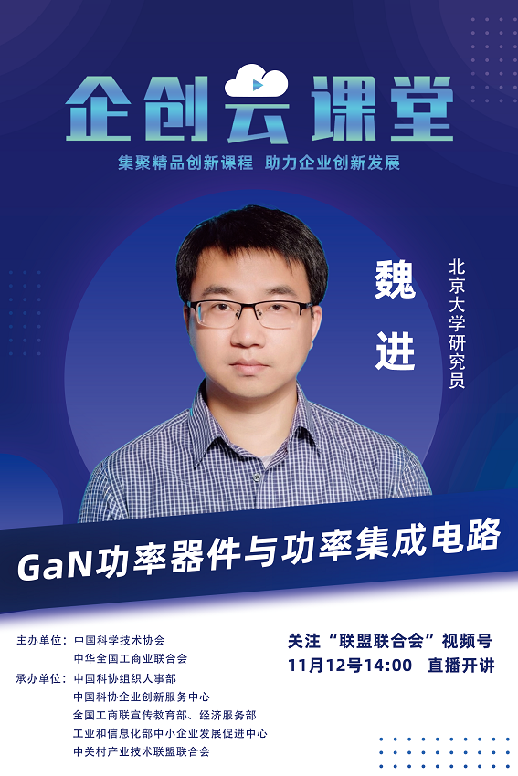 企创云课堂特邀北京大学集成电路学院研究员、博士生导师魏进,带来深度技术解析直播课《GaN功率器件与功率集成电路》。本次课程将从功率电子的基础原理出发,系统讲解GaN材料的特性、器件结构、关键技术与集成路径,深入剖析GaN在高效功率转换中的核心优势与挑战,并展望其在未来能源系统中的应用前景。