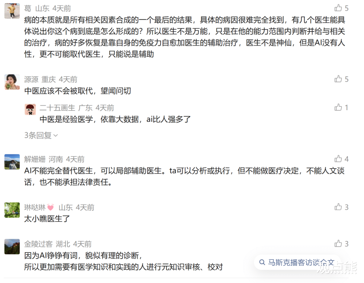 马斯克不会告诉你的是: AI确实能看片子,但法律责任还得医生背;AI能查文献,但治疗方案得医生综合判断;AI能写病历,但安慰家属还得人来。