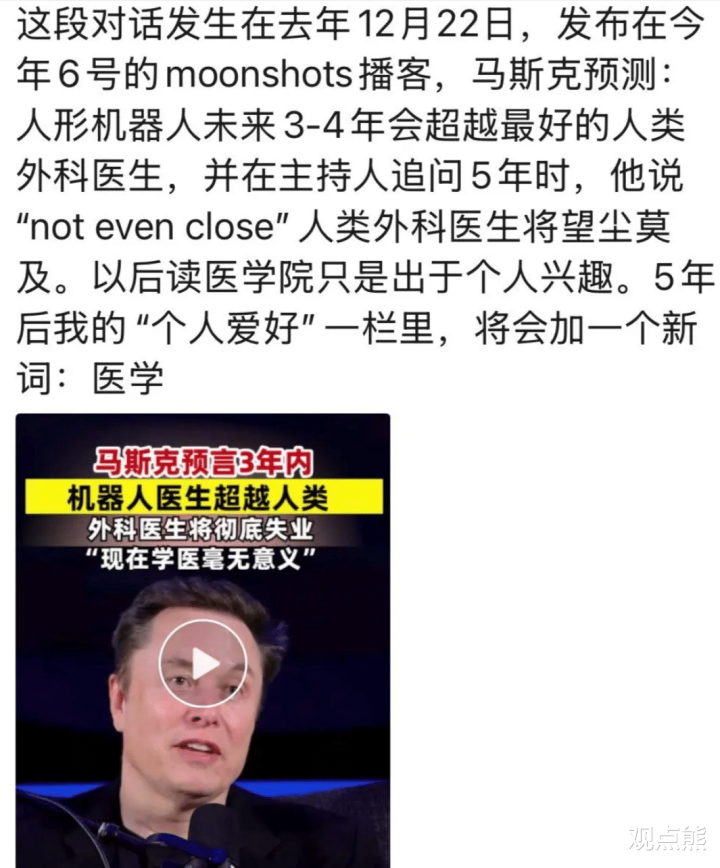 二、2026年马斯克最新预言:"医学专业将成为历史"