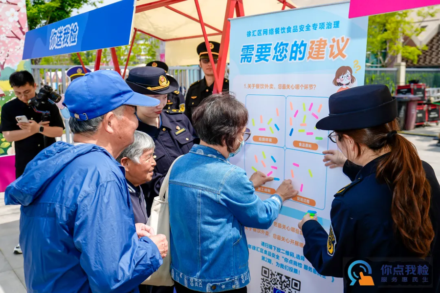 此次活动由上海市市场监督管理局、徐汇区市场监督管理局两级联动,以“繁花守沪,点检惠民”为主题。现场,“你点我检”意见征集区、“你送我检”服务台、“小段食安课堂”展台以沉浸式、互动式、零距离的服务模式,吸引众多市民游客踊跃体验。现场,监管人员引导市民扫码填写线上问卷,积极收集群众对食品安全抽检工作的诉求;“花间送检”特色服务则成为全场亮点,市民随手携带的蔬菜、肉制品等均可现场免费快检,即送即检、即检即告知。“小段食安课堂”展台的监管人员通过图文漫画等通俗讲解方式,普及食安知识。